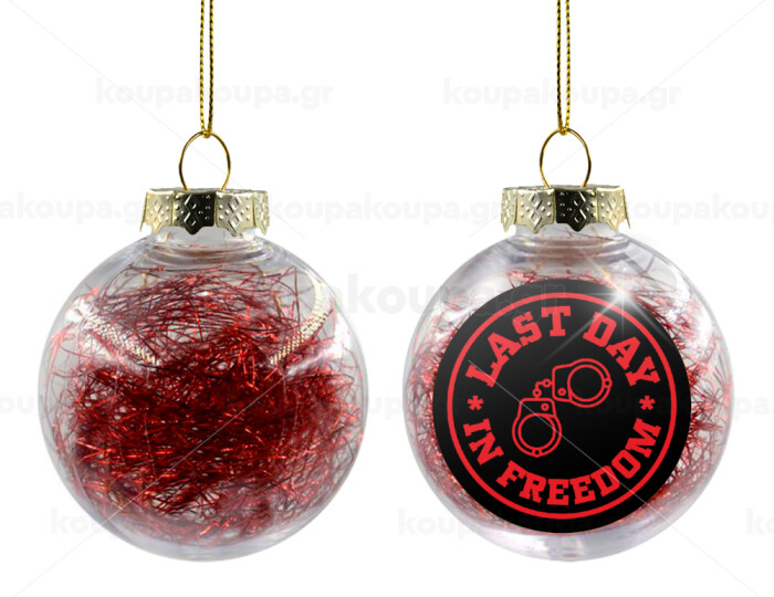 Last day freedom, Στολίδι Χριστουγεννιάτικη μπάλα δένδρου διάφανη με κόκκινο γέμισμα 8cm