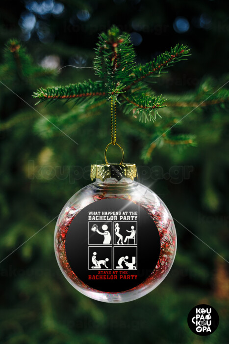 What happens at the bachelor party, stays at the bachelor party!, Στολίδι Χριστουγεννιάτικη μπάλα δένδρου διάφανη με κόκκινο γέμισμα 8cm