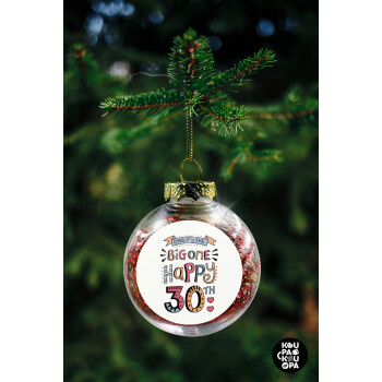 Big one Happy 30th, Στολίδι Χριστουγεννιάτικη μπάλα δένδρου διάφανη με κόκκινο γέμισμα 8cm