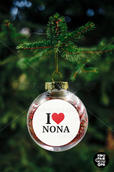 I Love ΝΟΝΑ, Στολίδι Χριστουγεννιάτικη μπάλα δένδρου διάφανη με κόκκινο γέμισμα 8cm
