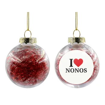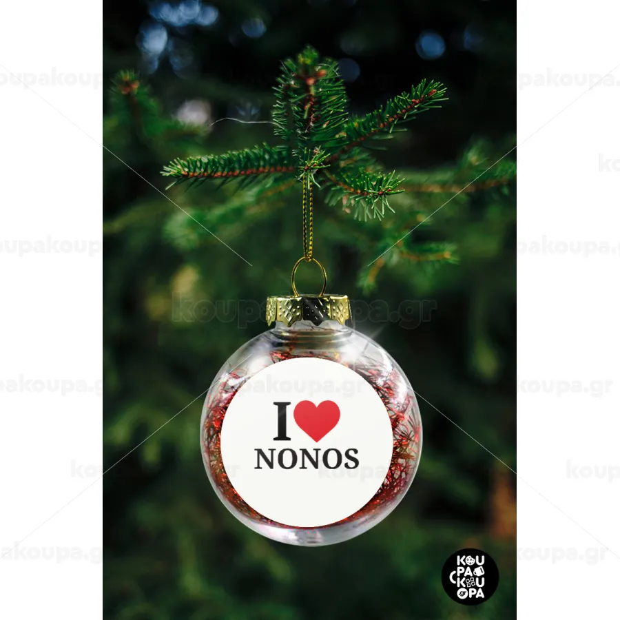 I Love ΝΟΝΟΣ, Στολίδι Χριστουγεννιάτικη μπάλα δένδρου διάφανη με κόκκινο γέμισμα 8cm