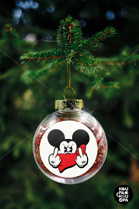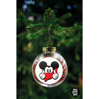 Mickey fuck off, Στολίδι Χριστουγεννιάτικη μπάλα δένδρου διάφανη με κόκκινο γέμισμα 8cm