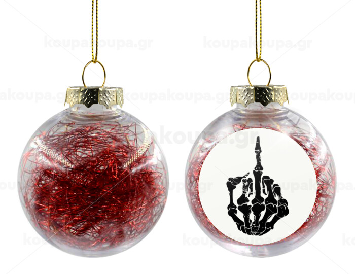 Middle finger, Στολίδι Χριστουγεννιάτικη μπάλα δένδρου διάφανη με κόκκινο γέμισμα 8cm