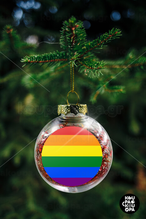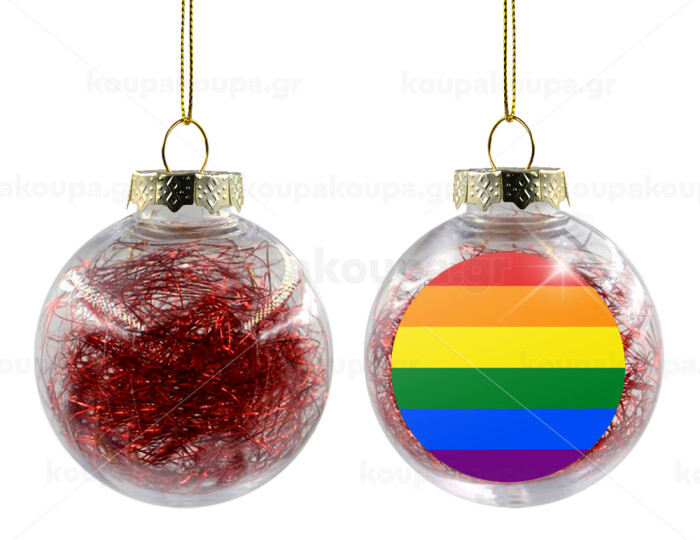 Rainbow flag (LGBT) , Στολίδι Χριστουγεννιάτικη μπάλα δένδρου διάφανη με κόκκινο γέμισμα 8cm
