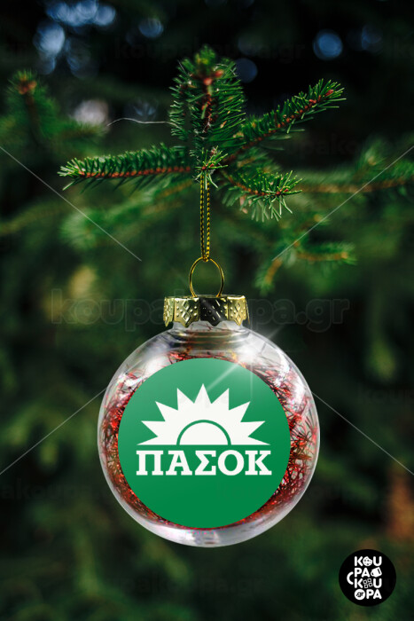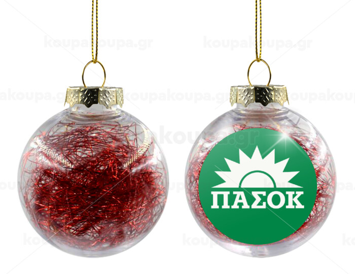 ΠΑΣΟΚ Πράσινο, Στολίδι Χριστουγεννιάτικη μπάλα δένδρου διάφανη με κόκκινο γέμισμα 8cm