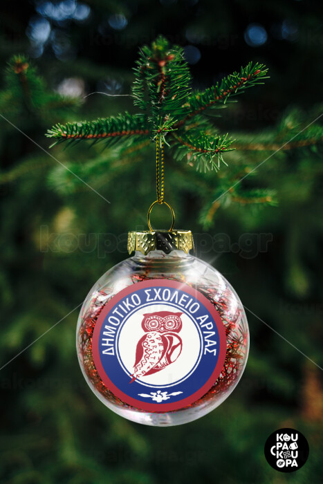 Έμβλημα Σχολικό κουκουβάγια μπορντό, Στολίδι Χριστουγεννιάτικη μπάλα δένδρου διάφανη με κόκκινο γέμισμα 8cm