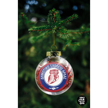 Χριστουγεννιάτικο διακοσμητικό στολίδι διάφανο με μεταλιζέ angel hair εσωτερικά σε μέγεθος 8cm, ελαφρύ σε μέγεθος για να μην κρεμάει το κλαδάκι, με κορδόνι στήριξης για τα κλαδάκια.