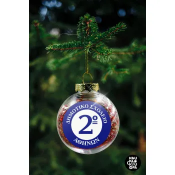 Έμβλημα Σχολικό μπλε, Στολίδι Χριστουγεννιάτικη μπάλα δένδρου διάφανη με κόκκινο γέμισμα 8cm