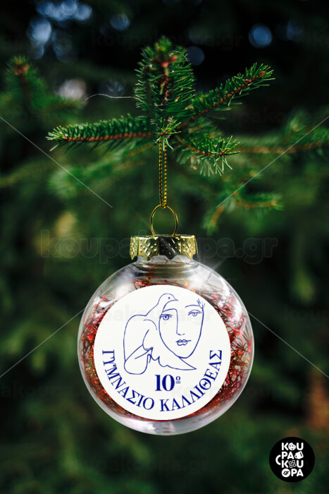 Έμβλημα Σχολικό, Στολίδι Χριστουγεννιάτικη μπάλα δένδρου διάφανη με κόκκινο γέμισμα 8cm