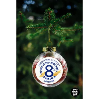 Σχολικό σήμα κορδέλα, Στολίδι Χριστουγεννιάτικη μπάλα δένδρου διάφανη με κόκκινο γέμισμα 8cm