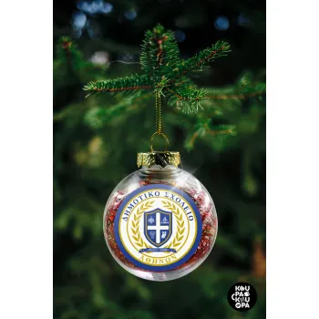 Σχολικό σήμα, Στολίδι Χριστουγεννιάτικη μπάλα δένδρου διάφανη με κόκκινο γέμισμα 8cm