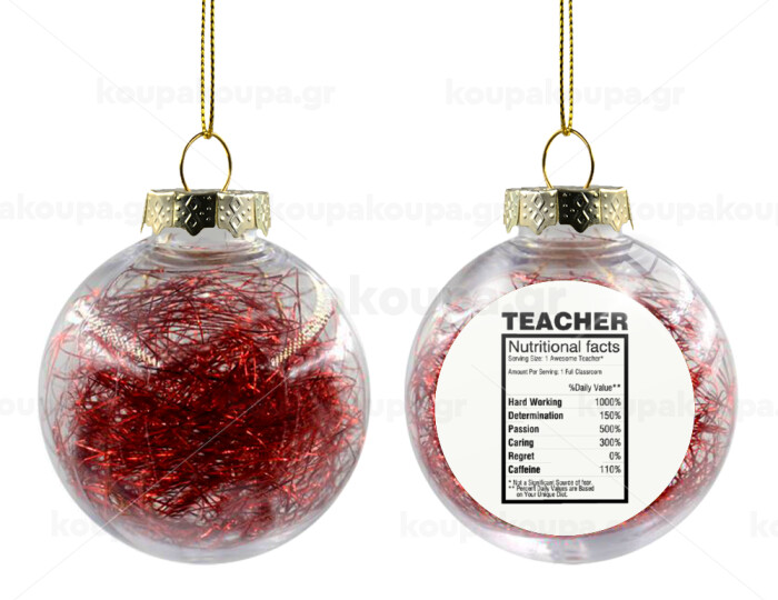 Τα συστατικά του δασκάλου, Στολίδι Χριστουγεννιάτικη μπάλα δένδρου διάφανη με κόκκινο γέμισμα 8cm