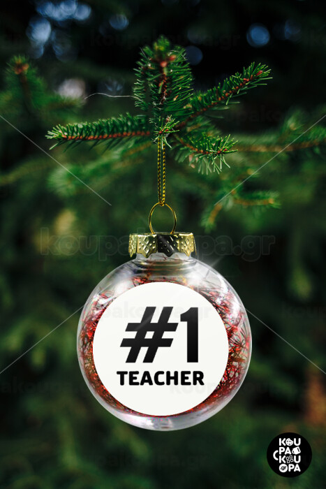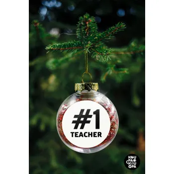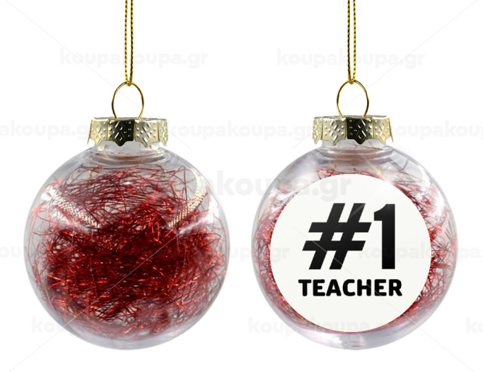 #1 teacher, Στολίδι Χριστουγεννιάτικη μπάλα δένδρου διάφανη με κόκκινο γέμισμα 8cm