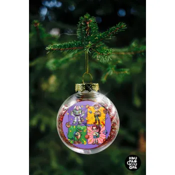 Back to the School Buzz & Friends, Στολίδι Χριστουγεννιάτικη μπάλα δένδρου διάφανη με κόκκινο γέμισμα 8cm