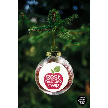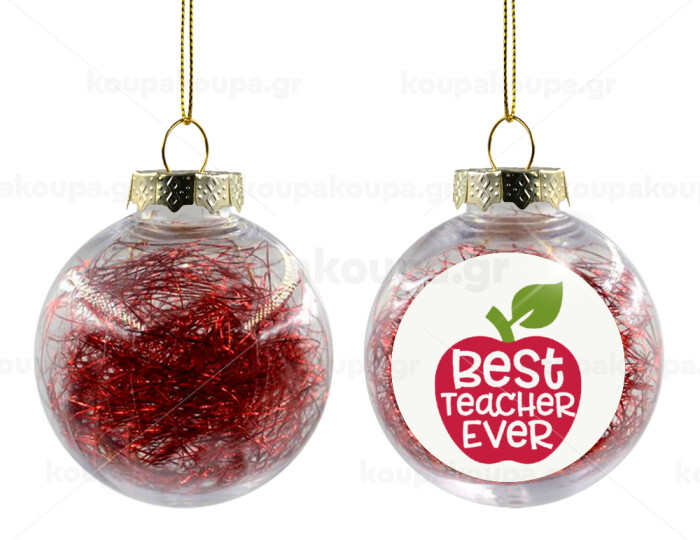 best teacher ever, apple!, Στολίδι Χριστουγεννιάτικη μπάλα δένδρου διάφανη με κόκκινο γέμισμα 8cm