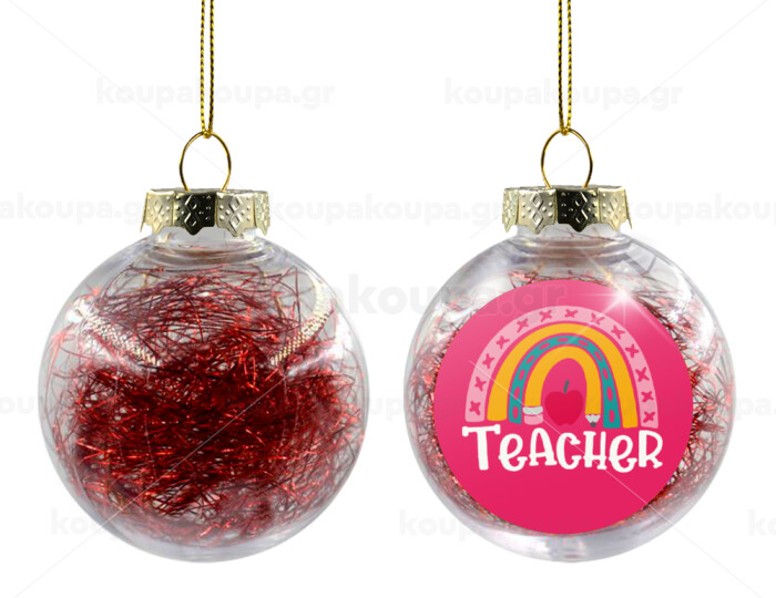 Rainbow teacher, Στολίδι Χριστουγεννιάτικη μπάλα δένδρου διάφανη με κόκκινο γέμισμα 8cm