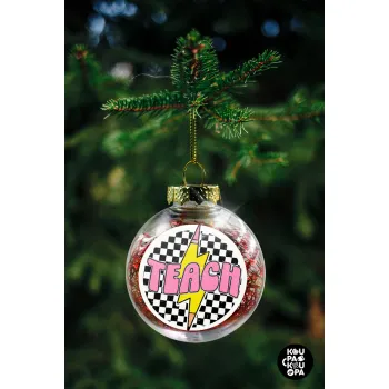 Teach, Στολίδι Χριστουγεννιάτικη μπάλα δένδρου διάφανη με κόκκινο γέμισμα 8cm