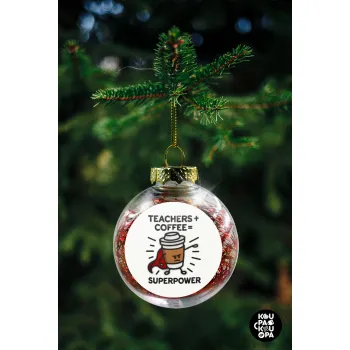 Teacher Coffee Super Power, Στολίδι Χριστουγεννιάτικη μπάλα δένδρου διάφανη με κόκκινο γέμισμα 8cm