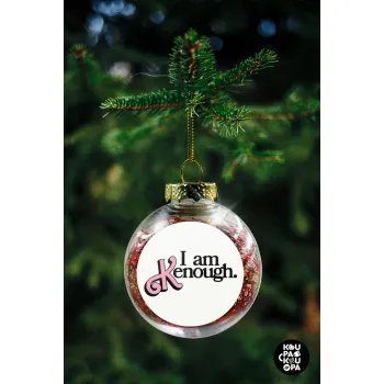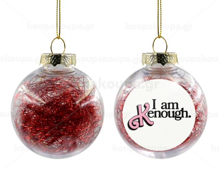 Barbie, i am Kenough, Στολίδι Χριστουγεννιάτικη μπάλα δένδρου διάφανη με κόκκινο γέμισμα 8cm
