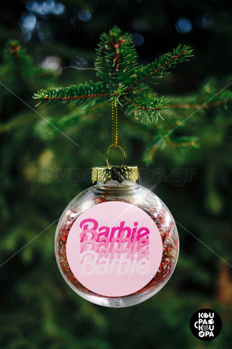Barbie repeat, Στολίδι Χριστουγεννιάτικη μπάλα δένδρου διάφανη με κόκκινο γέμισμα 8cm