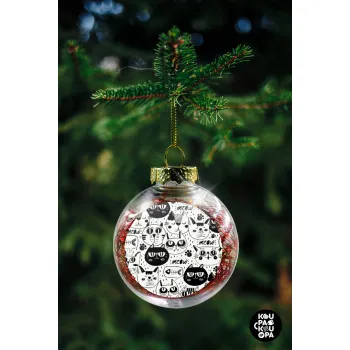 Γάτες, Στολίδι Χριστουγεννιάτικη μπάλα δένδρου διάφανη με κόκκινο γέμισμα 8cm