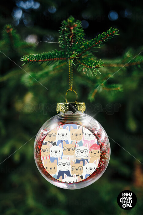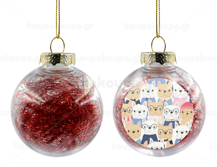 Σκύλοι, Στολίδι Χριστουγεννιάτικη μπάλα δένδρου διάφανη με κόκκινο γέμισμα 8cm