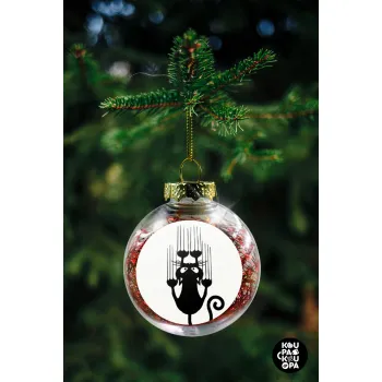 Cat scratching, Στολίδι Χριστουγεννιάτικη μπάλα δένδρου διάφανη με κόκκινο γέμισμα 8cm
