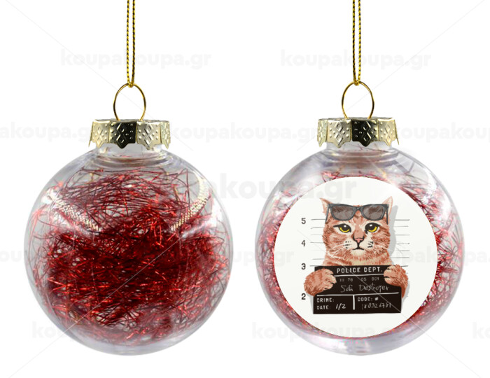 Cool cat, Στολίδι Χριστουγεννιάτικη μπάλα δένδρου διάφανη με κόκκινο γέμισμα 8cm