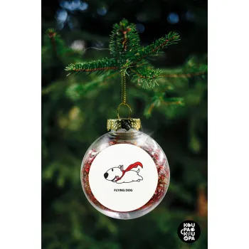 Flying DOG, Στολίδι Χριστουγεννιάτικη μπάλα δένδρου διάφανη με κόκκινο γέμισμα 8cm
