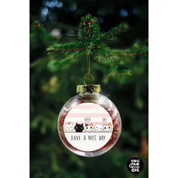 Have a nice day cats, Στολίδι Χριστουγεννιάτικη μπάλα δένδρου διάφανη με κόκκινο γέμισμα 8cm