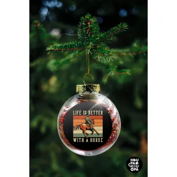 Life is Better with a Horse, Στολίδι Χριστουγεννιάτικη μπάλα δένδρου διάφανη με κόκκινο γέμισμα 8cm