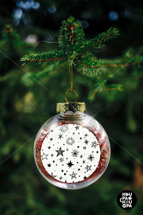 Doodle Stars, Στολίδι Χριστουγεννιάτικη μπάλα δένδρου διάφανη με κόκκινο γέμισμα 8cm
