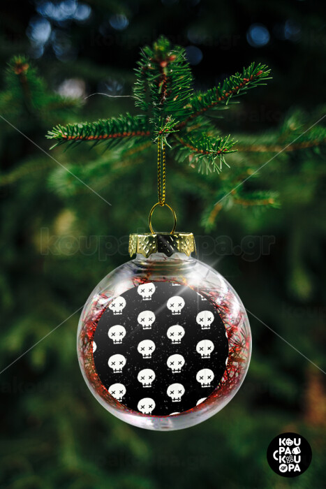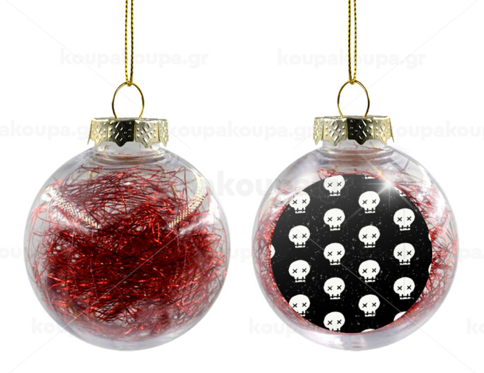 Σκελετοί b/w, Στολίδι Χριστουγεννιάτικη μπάλα δένδρου διάφανη με κόκκινο γέμισμα 8cm