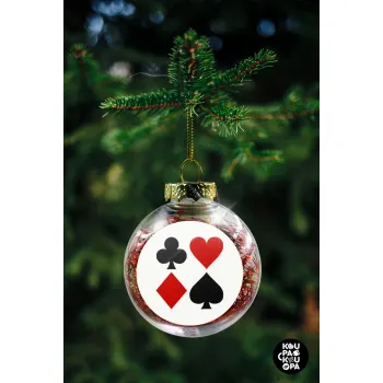 Τραπουλόχαρτα, Στολίδι Χριστουγεννιάτικη μπάλα δένδρου διάφανη με κόκκινο γέμισμα 8cm