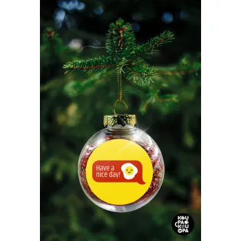 Have a nice day Emoji, Στολίδι Χριστουγεννιάτικη μπάλα δένδρου διάφανη με κόκκινο γέμισμα 8cm