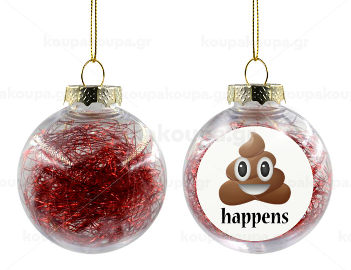 Shit Happens, Στολίδι Χριστουγεννιάτικη μπάλα δένδρου διάφανη με κόκκινο γέμισμα 8cm