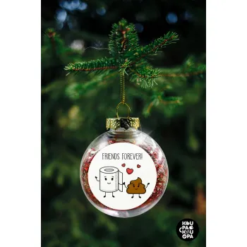 Friends forever, Στολίδι Χριστουγεννιάτικη μπάλα δένδρου διάφανη με κόκκινο γέμισμα 8cm