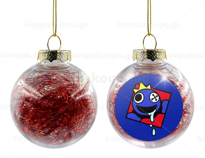 Blue, Rainbow friends, Στολίδι Χριστουγεννιάτικη μπάλα δένδρου διάφανη με κόκκινο γέμισμα 8cm