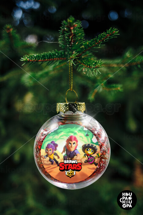 Brawl Stars Desert, Στολίδι Χριστουγεννιάτικη μπάλα δένδρου διάφανη με κόκκινο γέμισμα 8cm