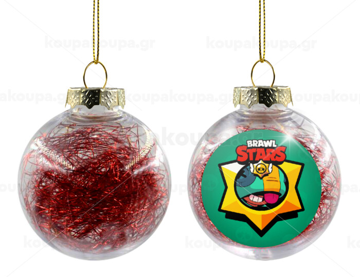 Brawl Stars Leon, Στολίδι Χριστουγεννιάτικη μπάλα δένδρου διάφανη με κόκκινο γέμισμα 8cm