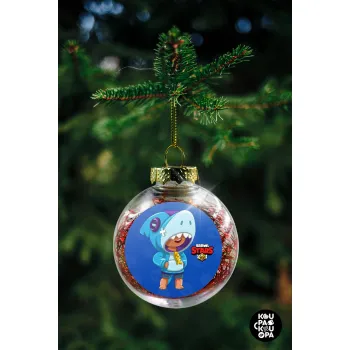 Brawl Stars Leon Shark, Στολίδι Χριστουγεννιάτικη μπάλα δένδρου διάφανη με κόκκινο γέμισμα 8cm