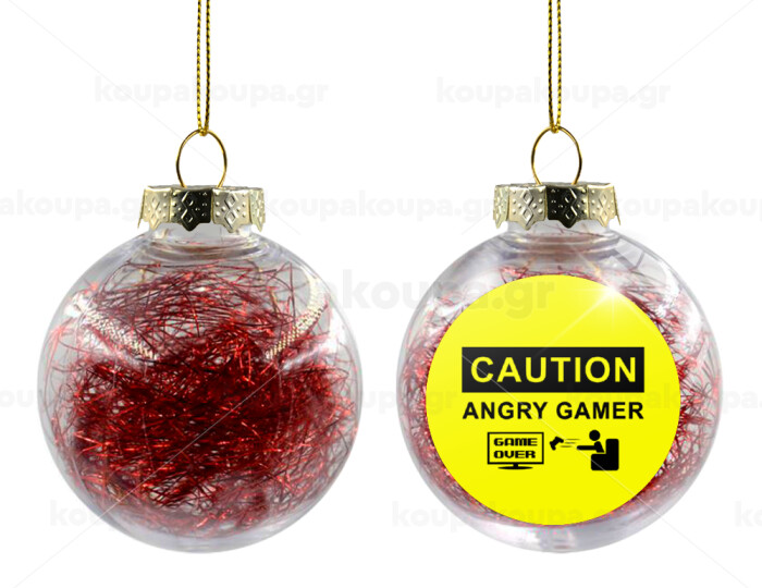 Caution, angry gamer!, Στολίδι Χριστουγεννιάτικη μπάλα δένδρου διάφανη με κόκκινο γέμισμα 8cm