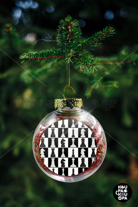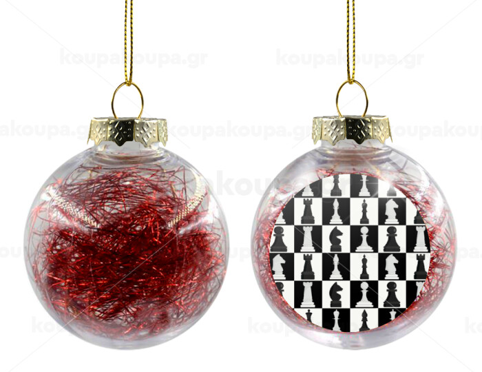 Chess set, Στολίδι Χριστουγεννιάτικη μπάλα δένδρου διάφανη με κόκκινο γέμισμα 8cm