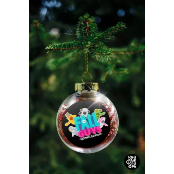 FALL GUYS, Στολίδι Χριστουγεννιάτικη μπάλα δένδρου διάφανη με κόκκινο γέμισμα 8cm