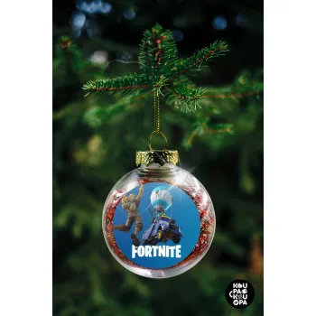 Fortnite Bus, Στολίδι Χριστουγεννιάτικη μπάλα δένδρου διάφανη με κόκκινο γέμισμα 8cm