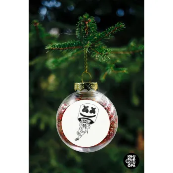 Fortnite Marshmello, Στολίδι Χριστουγεννιάτικη μπάλα δένδρου διάφανη με κόκκινο γέμισμα 8cm