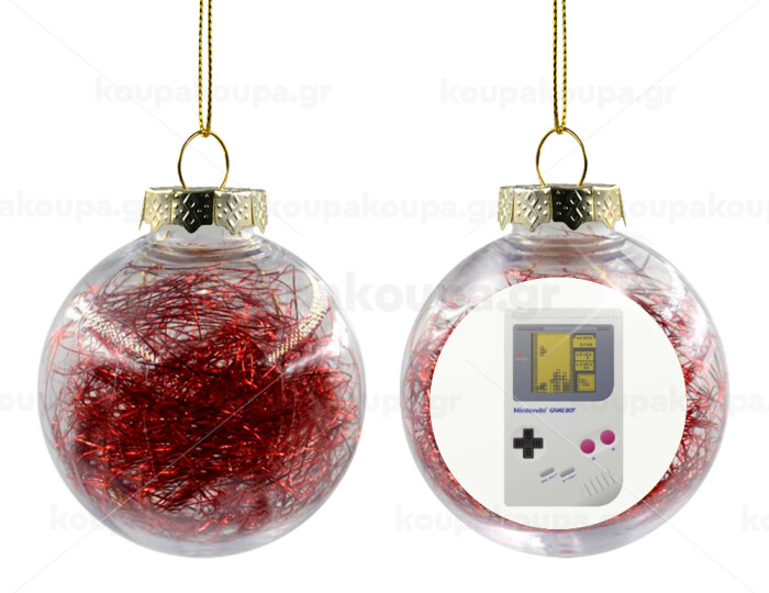 Gameboy, Στολίδι Χριστουγεννιάτικη μπάλα δένδρου διάφανη με κόκκινο γέμισμα 8cm