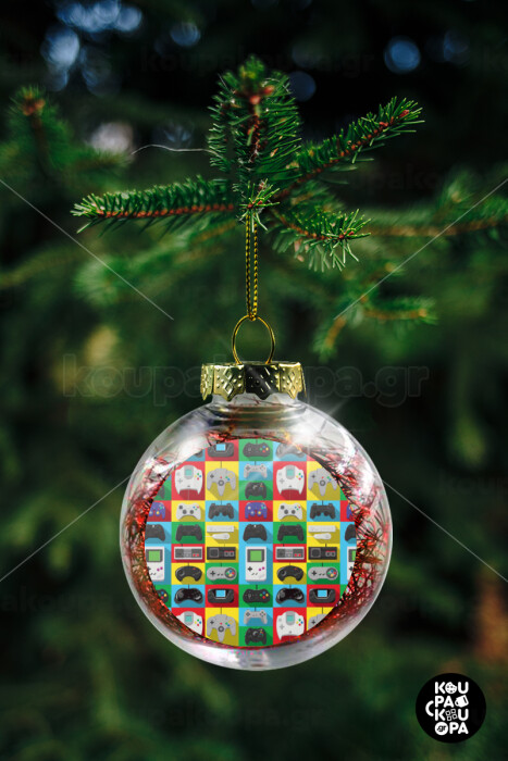 Gaming Controllers, Στολίδι Χριστουγεννιάτικη μπάλα δένδρου διάφανη με κόκκινο γέμισμα 8cm