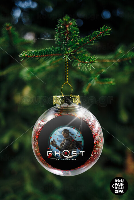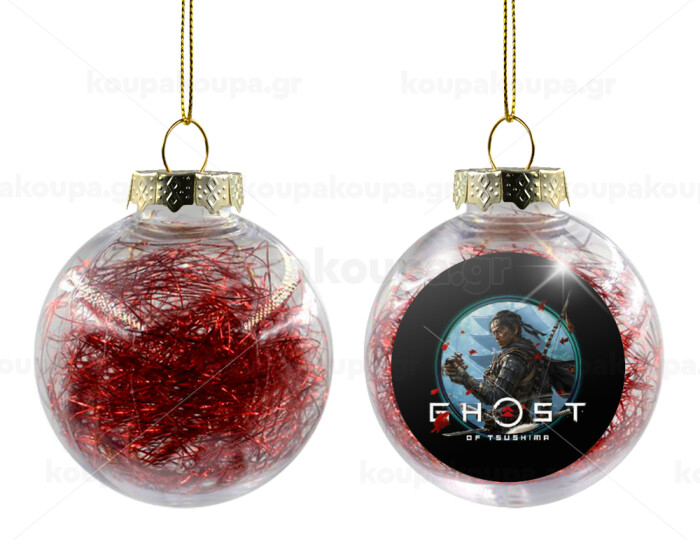 Ghost of Tsushima, Στολίδι Χριστουγεννιάτικη μπάλα δένδρου διάφανη με κόκκινο γέμισμα 8cm