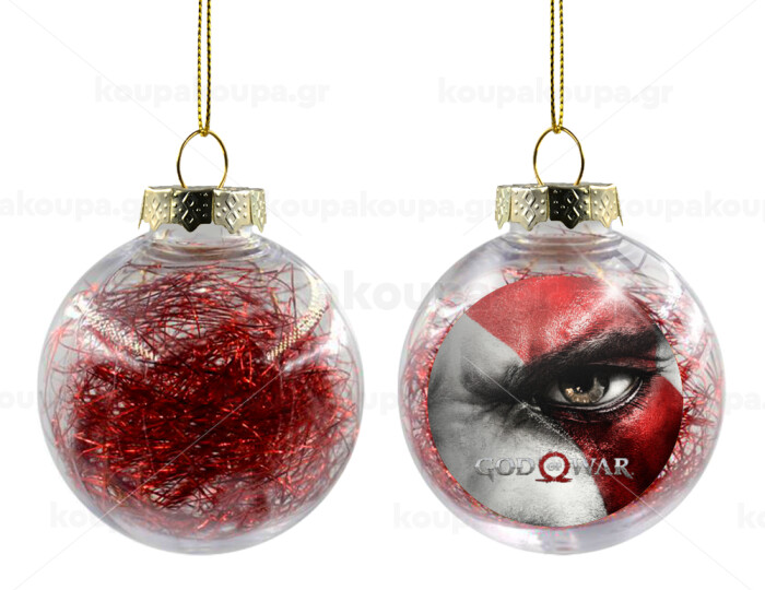 God of war Stratos, Στολίδι Χριστουγεννιάτικη μπάλα δένδρου διάφανη με κόκκινο γέμισμα 8cm